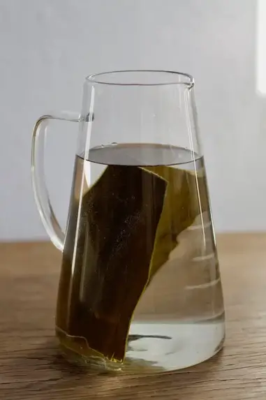 Schneide mit einer Schere einige Schlitze in das Konbu sobald es weich ist damit er mehr Aromen freisetzt. Lasse das Wasser im Topf langsam auf dem Herd aufkochen. Schneide mit einer Schere einige Schlitze in das Konbu sobald es weich ist damit er mehr Aromen freisetzt.